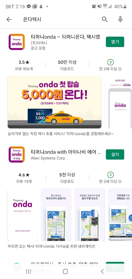 아이폰인데 어쩌지? 그런 걱정 하덜덜 마세요. 온다택시 어플다운은 안드로이드폰과 아이폰 모두 다운받을 수 있어요. 우선 어플을 다운받기 위해 "구글플레이 스토어"를 방문하여 "온다택시"를 검색합니다.