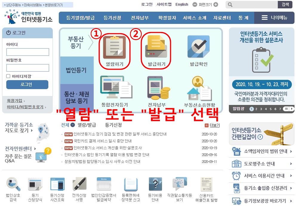 가. 회원가입 후 인터넷등기소 등기부등본 열람 및 발급받기