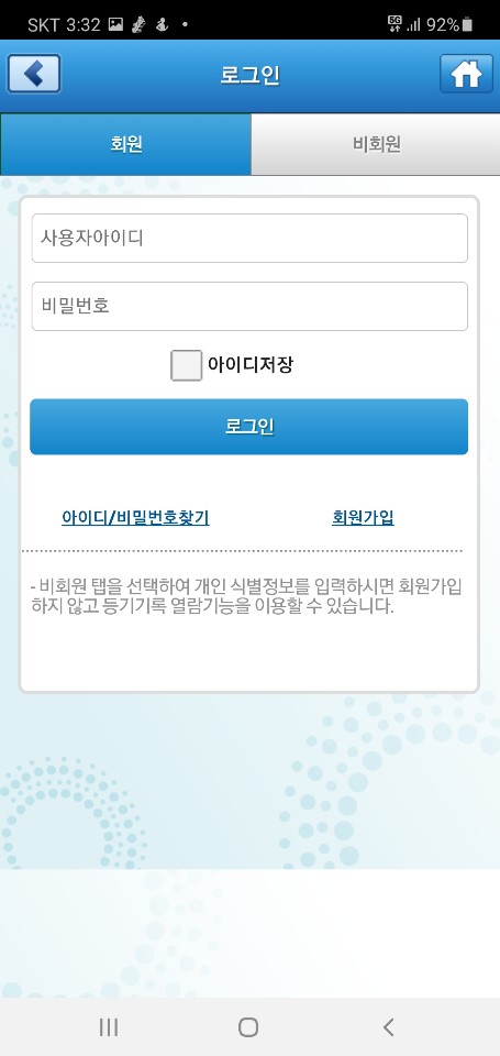 구글 플레이스토어 또는 아이폰 앱스토어 실행 후 "인터넷등기소" 검색하여 애플리케이션 설치 후 이용하며, PC 또는 노트북을 통한 인터넷 회원가입방법과 동일하게 회원 및 비회원 자격으로 등기부등본 열람 및 발급 신청할 수 있습니다. 스마트폰 앱을 설치하면 모바일로도 등기부등본 인터넷 열람 및 발급이 가능하니 정말 좋아졌습니다.