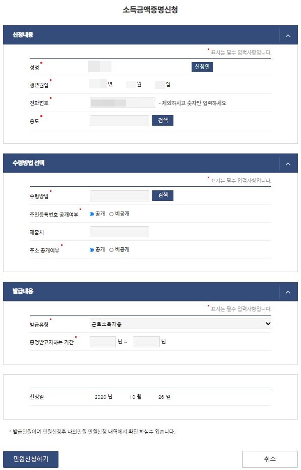아. 증명받고자 하는 기간 : 해당 연도를 입력하여 주면 됩니다.