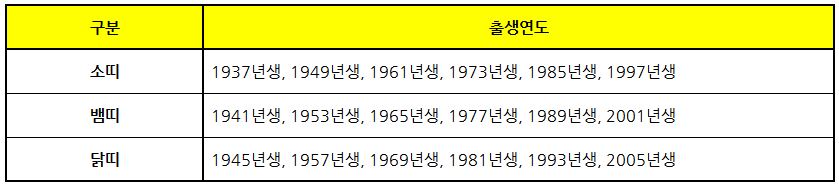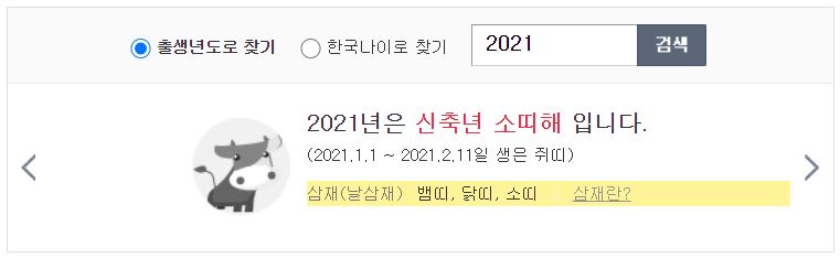 ※ 2021년 2월 11일까지 태어나면 쥐띠, 2월 11일 이후에 태어나면 소띠로 구분됩니다.