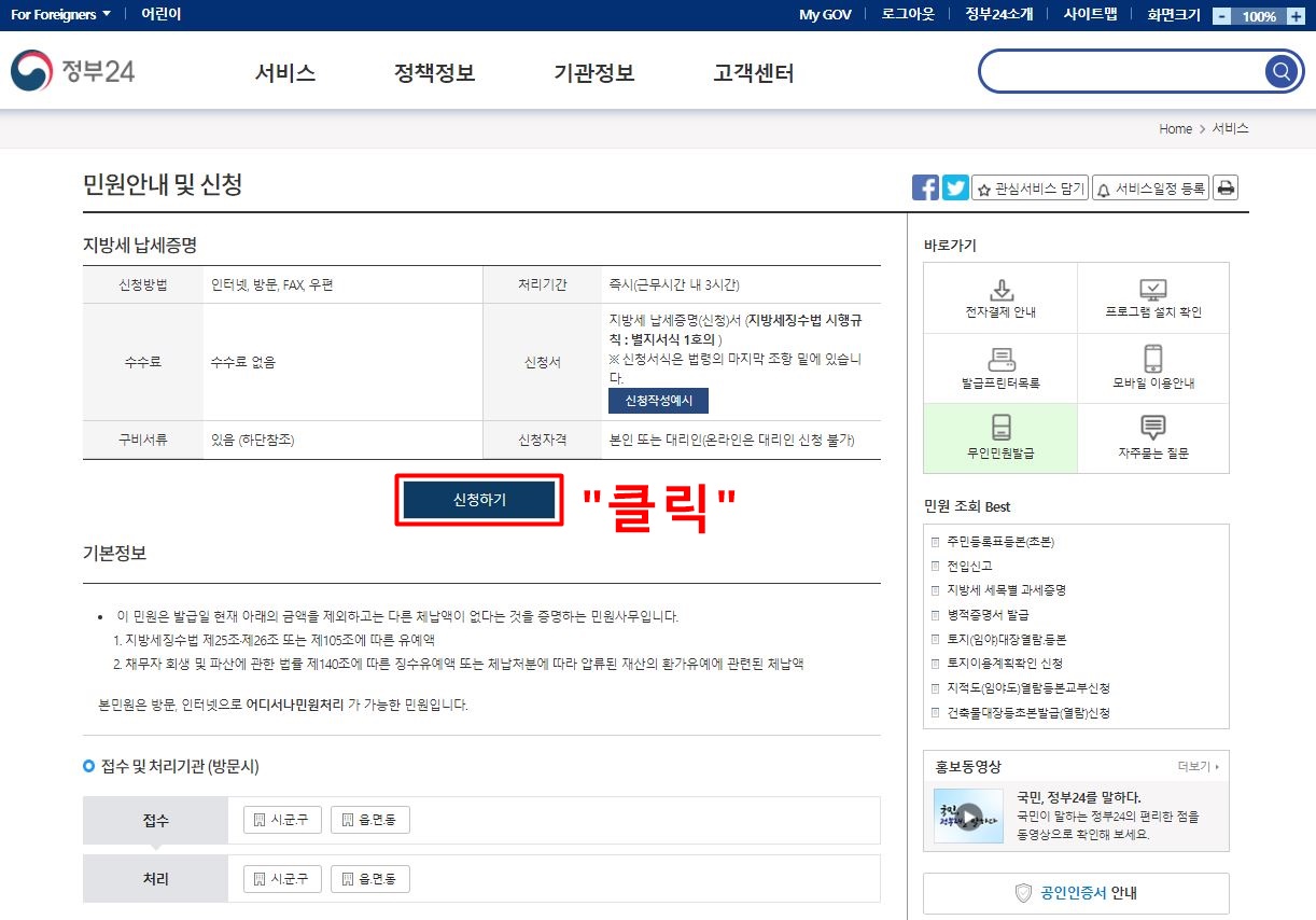 시간은 촉박하고 세무서, 구청, 주민센터 등 일일히 관공서 방문하여 발급 받지 않으셔도 됩니다. 지방세완납증명서 인터넷발급을 받을 수 있기 때문이죠!