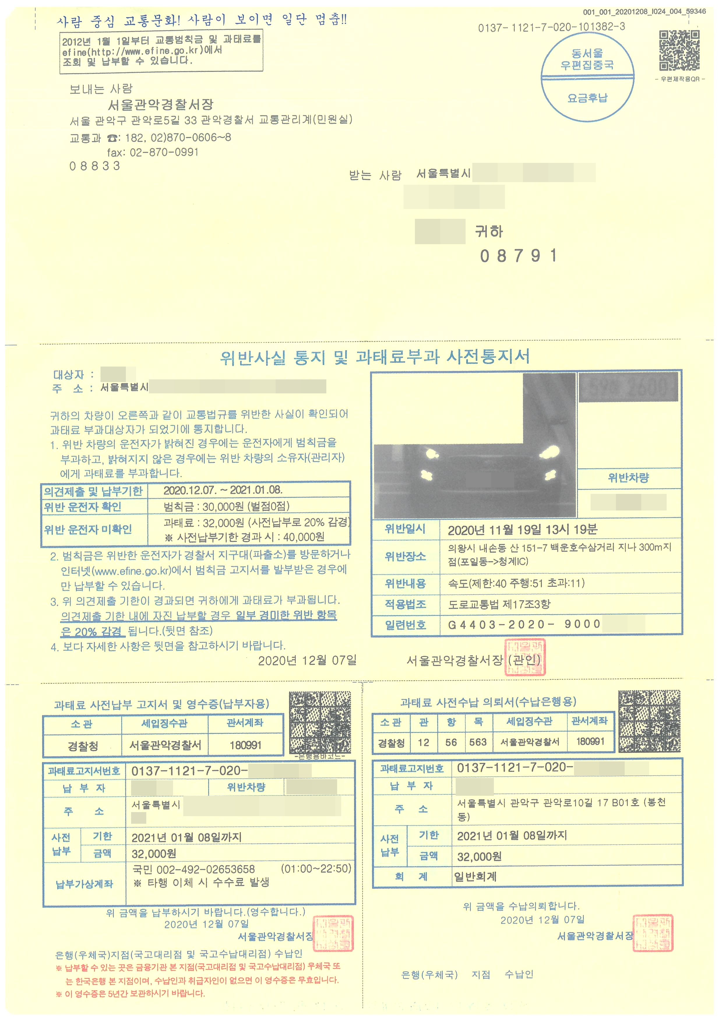 2. 과태료의 경우 한 달 이내에 사전납부를 통해 20% 경감 혜택을 받는 것이 유리합니다.