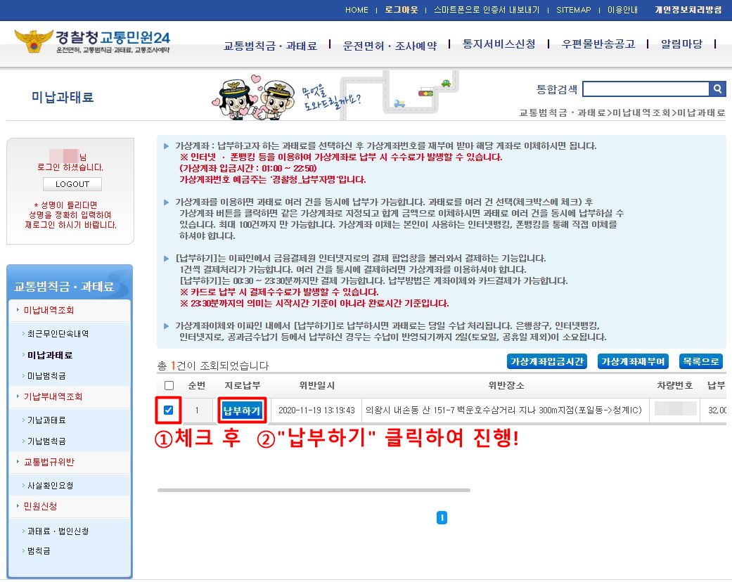 ▶교통범칙금 조회 납부, 교통법규 위반 과태료 조회 납부 방법 : 고려사항