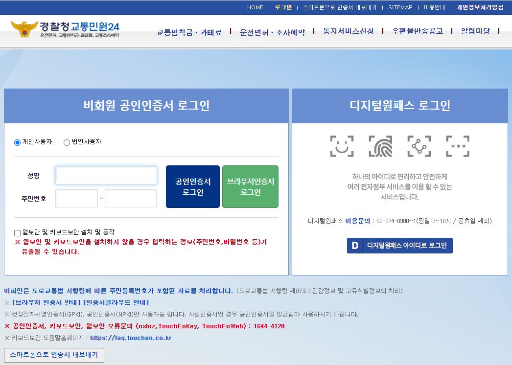 이제 경찰청 교통민원24 사이트 이파인을 통해 교통범칙금 및 교통법규 위반 과태료 조회하고 납부까지 해볼까요?
