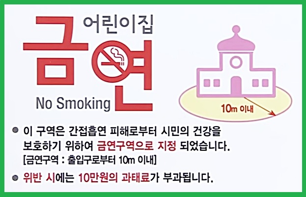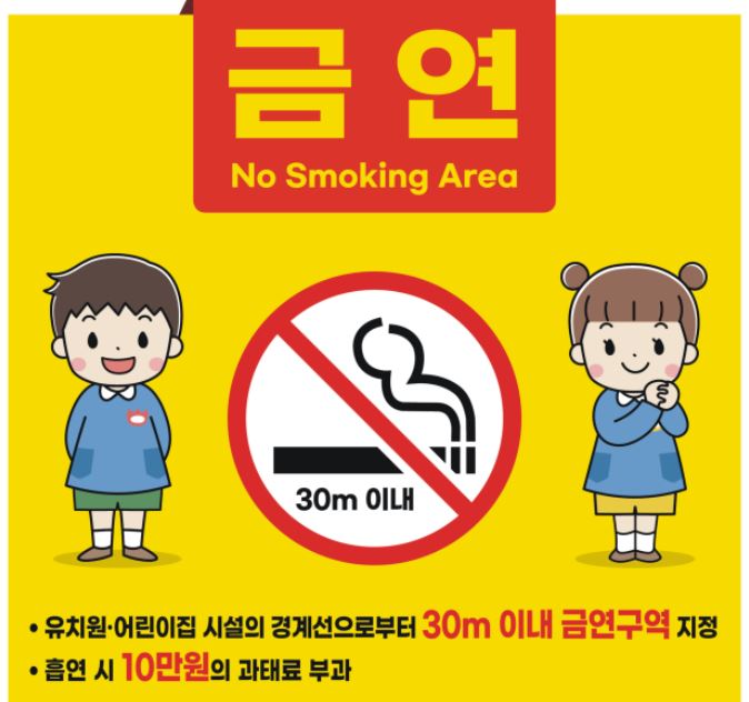 원래 어린이집, 유치원, 초등학교부터 고등학교시설 주변 10m 이내를 금연구역으로 지정했었습니다.