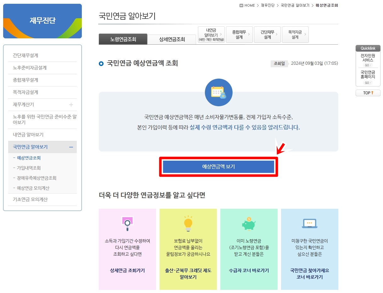 3. 예상연금액 조회 다음화면에서 "예상연금액 보기"를 클릭합니다.