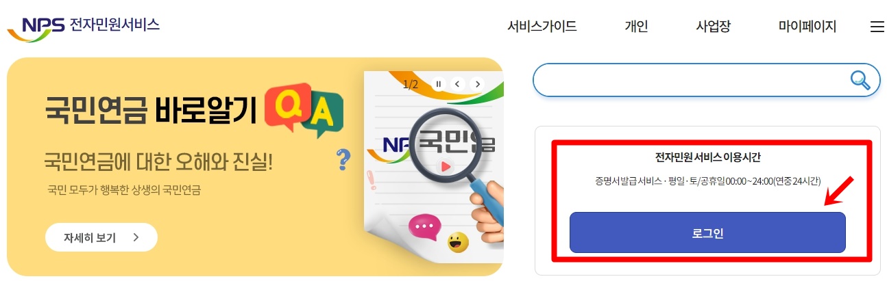 1. 국민연금공단 홈페이지에 접속해 본인 인증절차를 완료합니다.